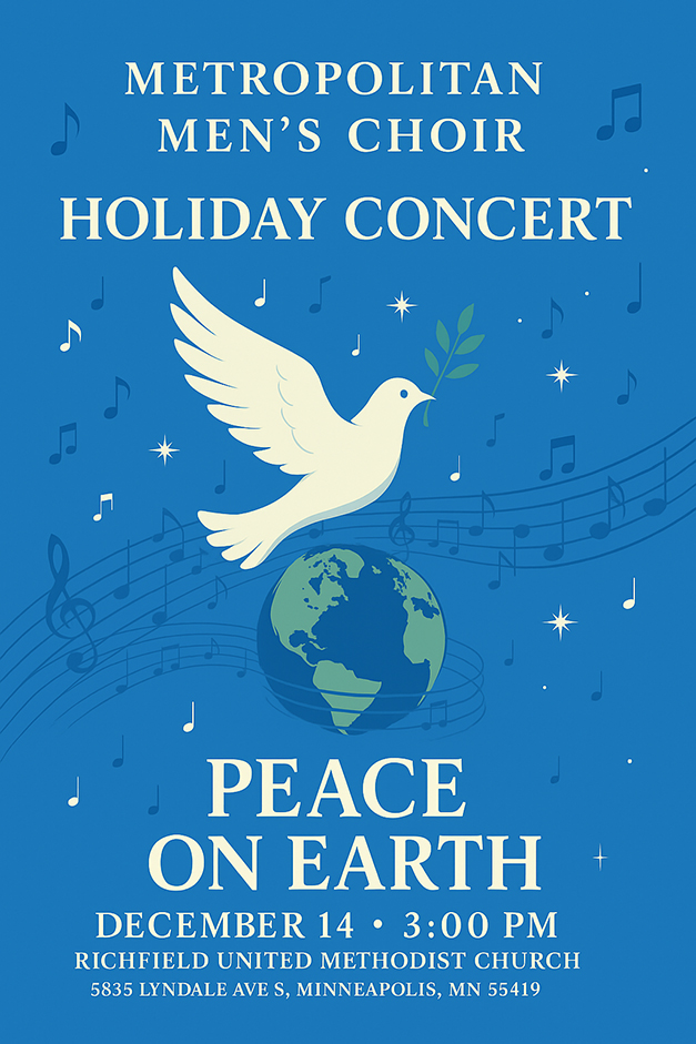 The Metropolitan Men’s Choir is built around the pleasure of making music with good friends and reaching for the best within us. What bonds us together is the fun we have learning and performing great music. Our repertoire includes a wide range of styles: folk tunes, hymns, jazz, madrigals, spirituals, chorales, and barbershop. MMC sings in venues ranging from intimate chapels to the largest concert halls. We've performed with members of the Minnesota Orchestra, Twin Cities youth orchestras, in the recent Minnesota premier of “The Events” at the Guthrie Theater, and at Carnegie Hall in New York City to perform Randall Thompson’s Testament of Freedom. Open Auditions for the 2025-26 seasonFor information and sign-up please send us an email. Metropolitan Men's Choir Mission:
